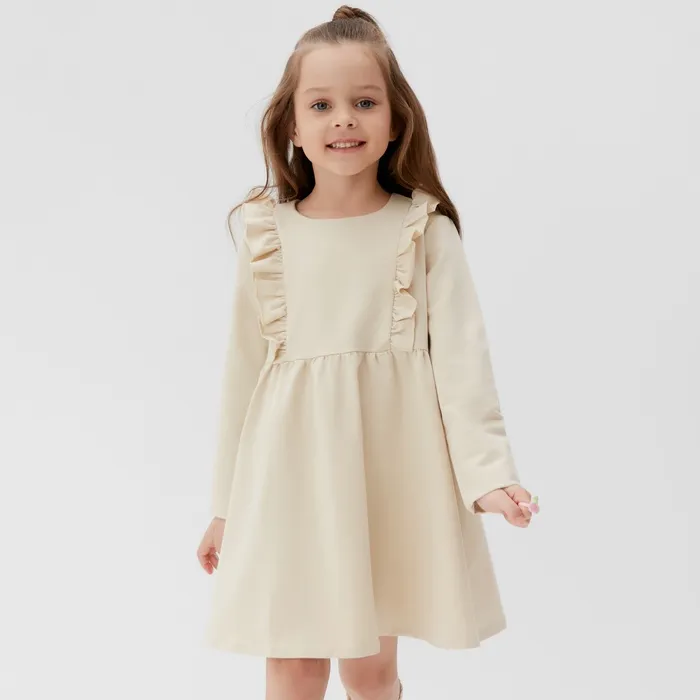 Платье для девочки с рюшей KAFTAN "Basic line", размер 34 (122-128), цвет кремовый — Характеристики