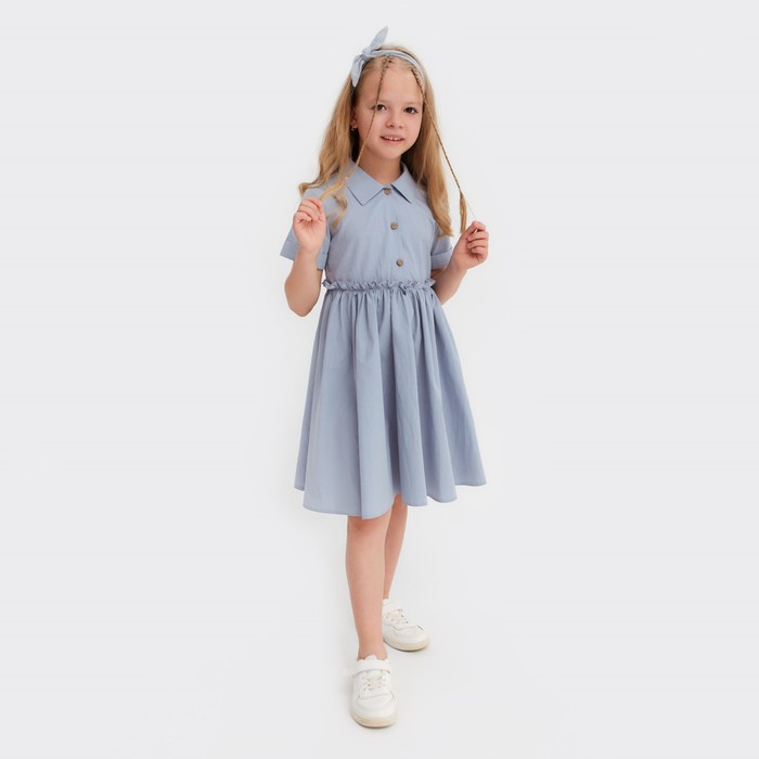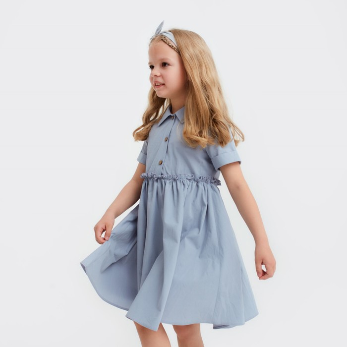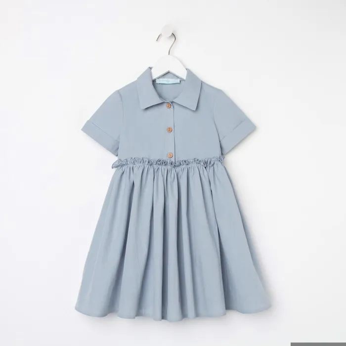 Платье для девочки с воротником KAFTAN, размер 32 (110-116 см), серо-голубое — Характеристики