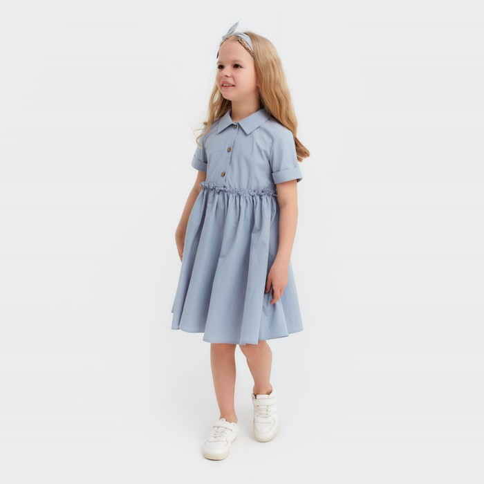 Платье для девочки с воротником KAFTAN, размер 36 (134-140 см), серо-голубое — Характеристики