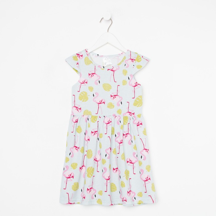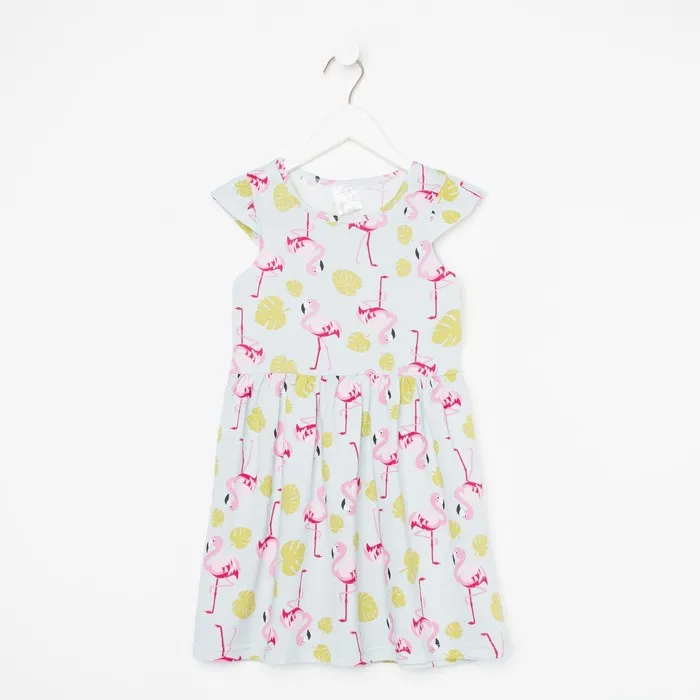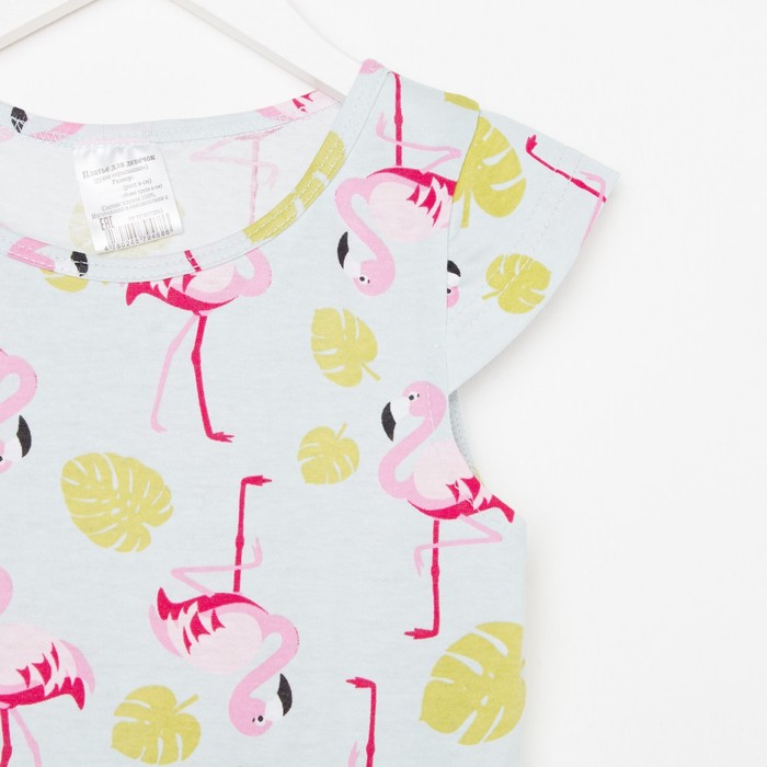 Платье для девочки, цвет голубой, принт фламинго, рост 116-122 см — Характеристики