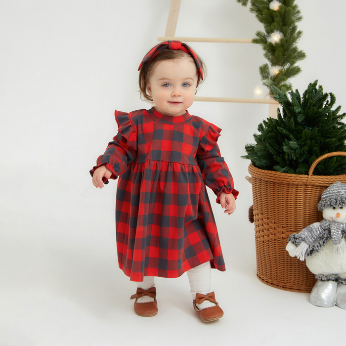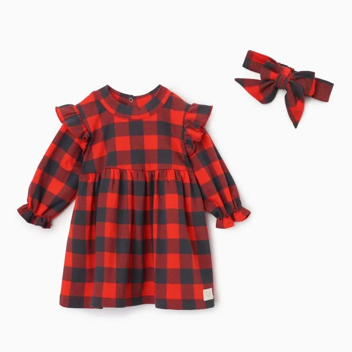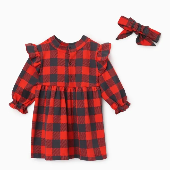 Платье и повязка Крошка Я "Клеточка", рост 86-92 см, красный — Характеристики