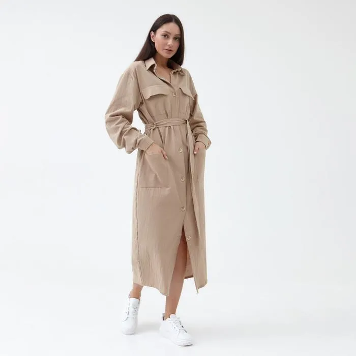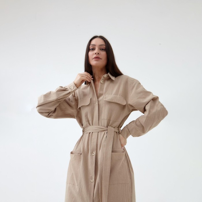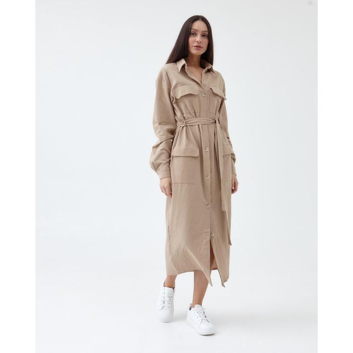 Платье льняное миди женское MIST, размер 44, бежевое — Характеристики