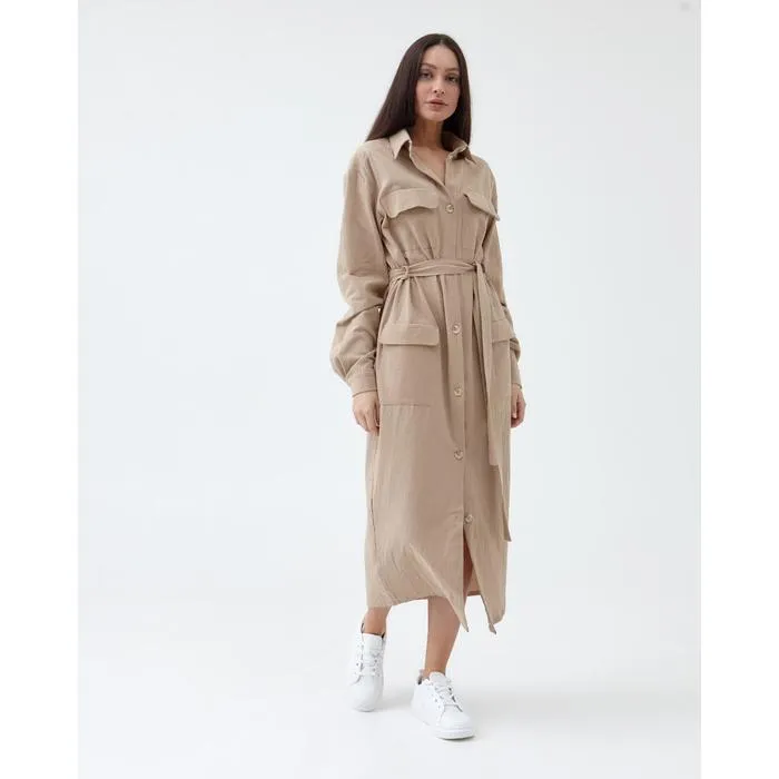 Платье льняное миди женское MIST, размер 48, бежевое — Характеристики