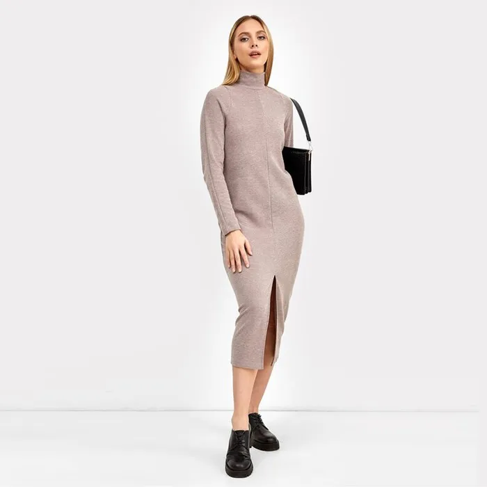 Платье миди женское, кофейное меланж, размер 48 — Характеристики