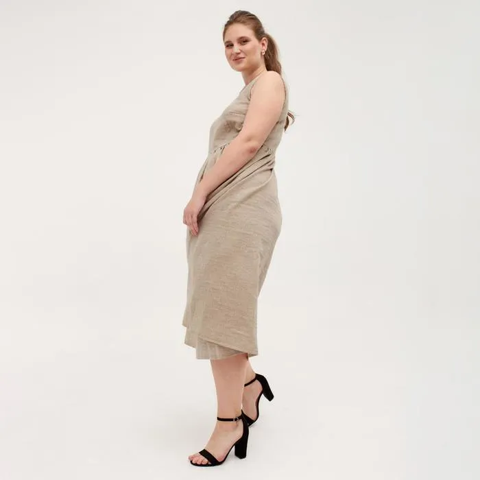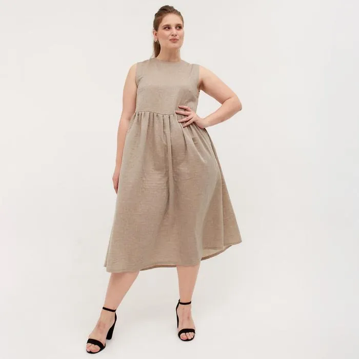 Платье миди женское MINAKU: Cotton collection, бежевое, размер 52 — Характеристики