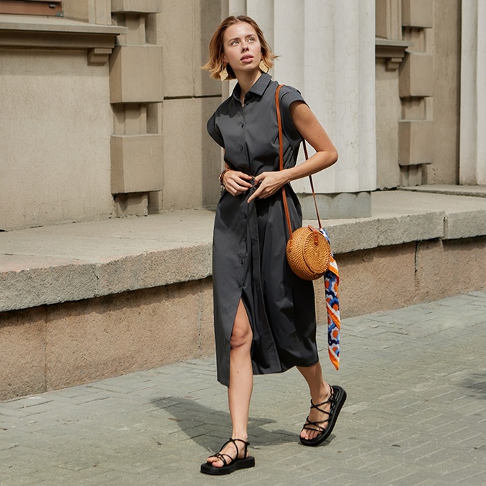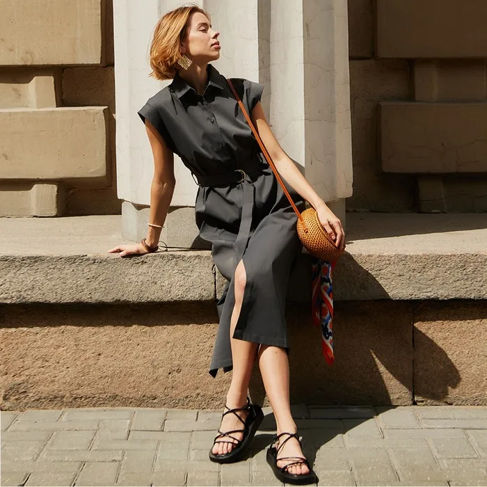 Платье миди женское MINAKU: Safari, графит, размер 46 — Характеристики