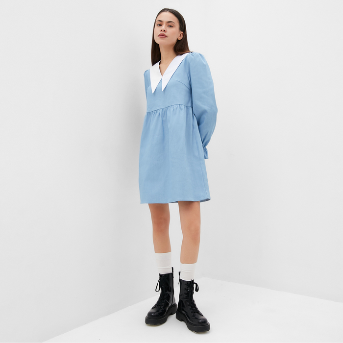 Платье мини женское джинсовое с воротником MIST, размер 42, светло-голубое — Характеристики