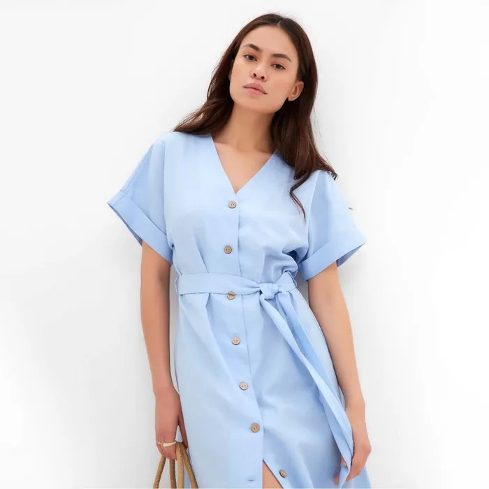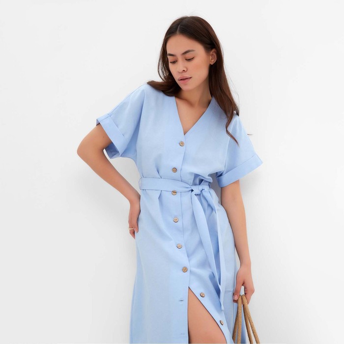 Платье на пуговицах миди женское MIST Summer time, голубое, размер 46 — Характеристики