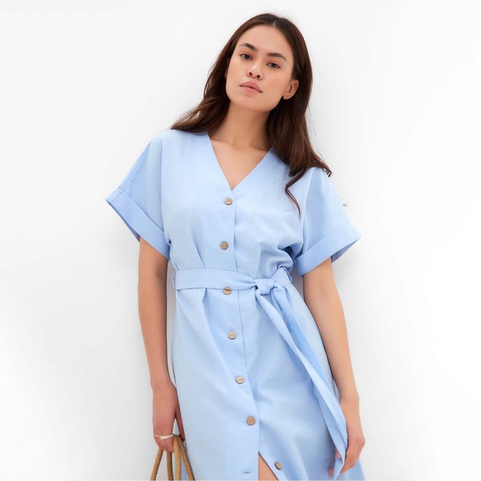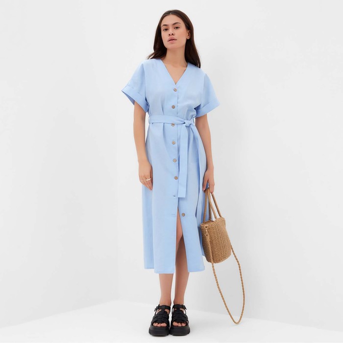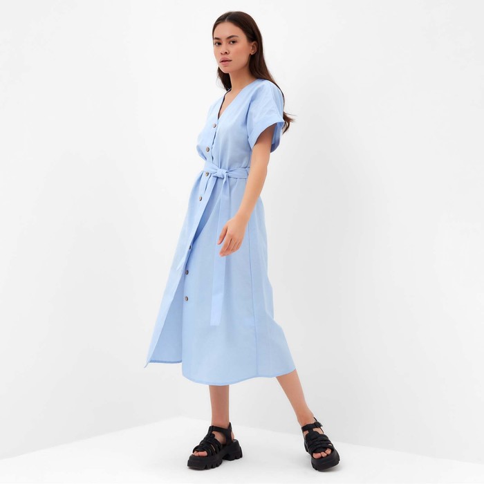 Платье на пуговицах миди женское MIST Summer time, голубое, размер 50 — Характеристики