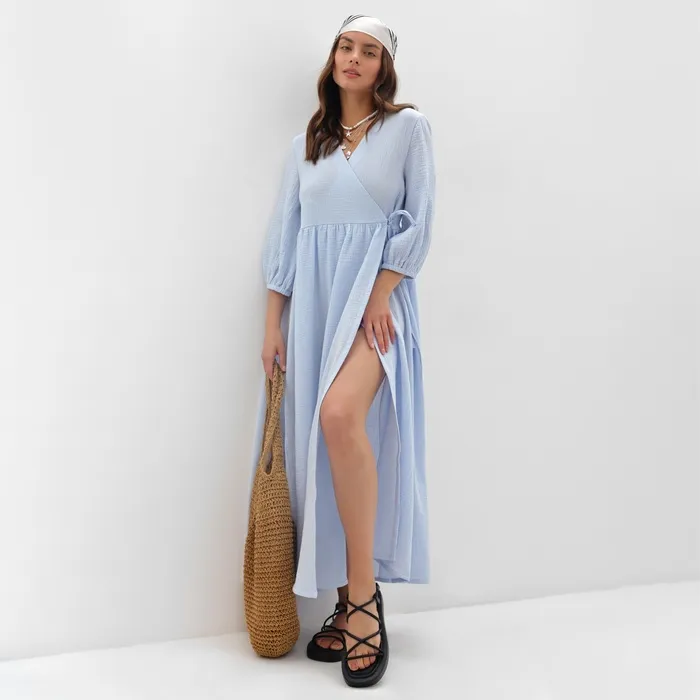 Платье на запах миди женское MIST Summer time, размер 44-46, голубое — Характеристики
