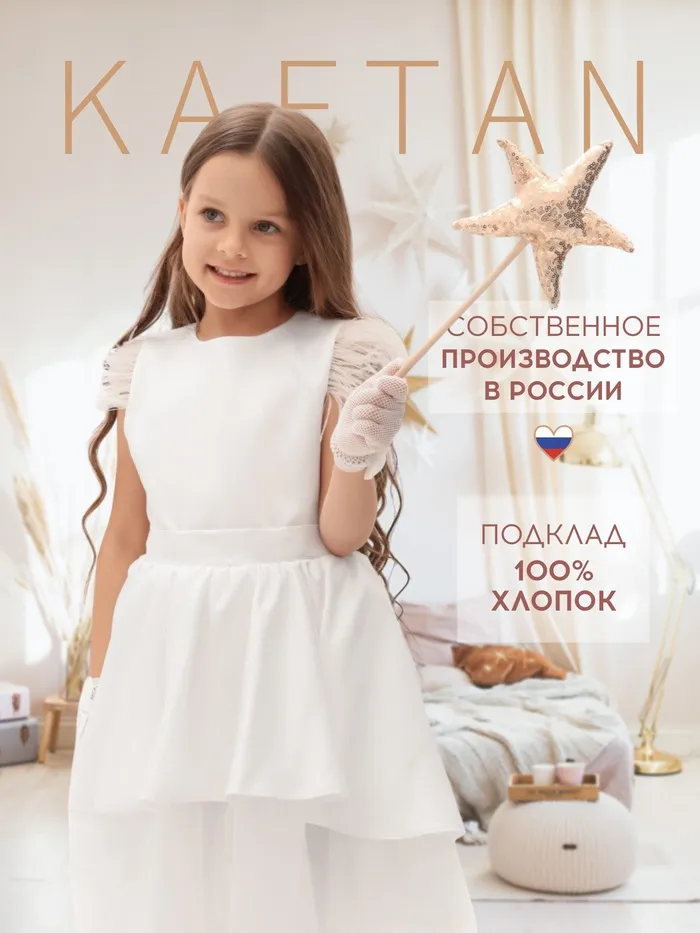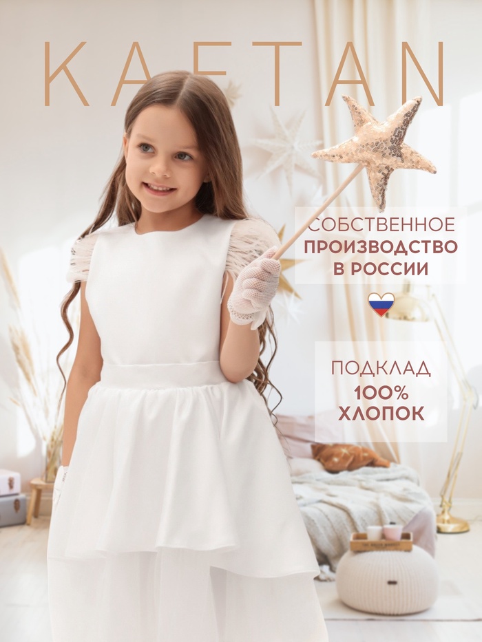 Платье нарядное детское KAFTAN, р.36 (134-140 см), белый — Характеристики