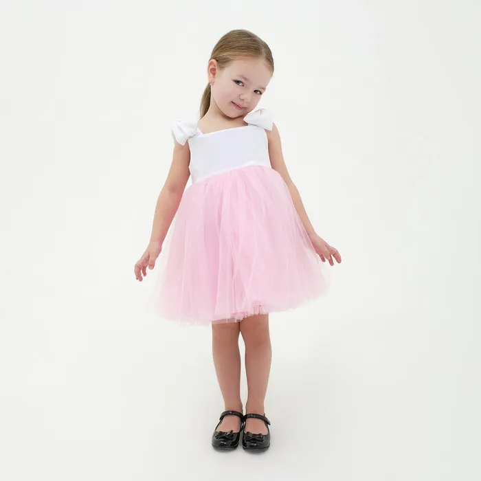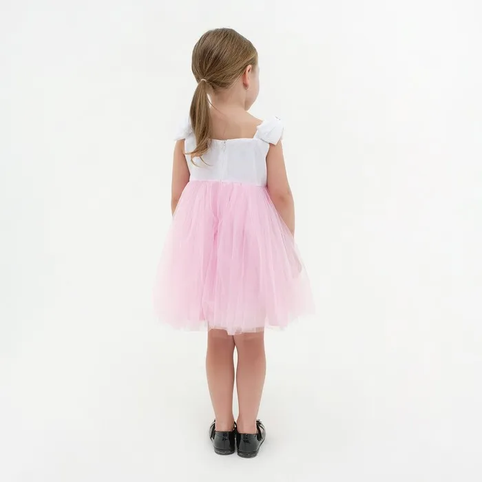Платье нарядное детское KAFTAN, размер 32 (110-116 см), белый/розовый — Характеристики