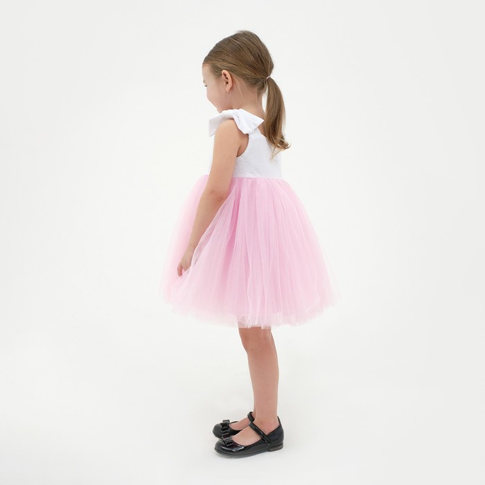 Платье нарядное детское KAFTAN, размер 34 (122-128 см), белый/розовый — Характеристики
