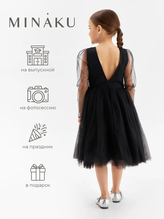 Платье нарядное детское MINAKU: PartyDress, чёрное, рост 116 см — Характеристики