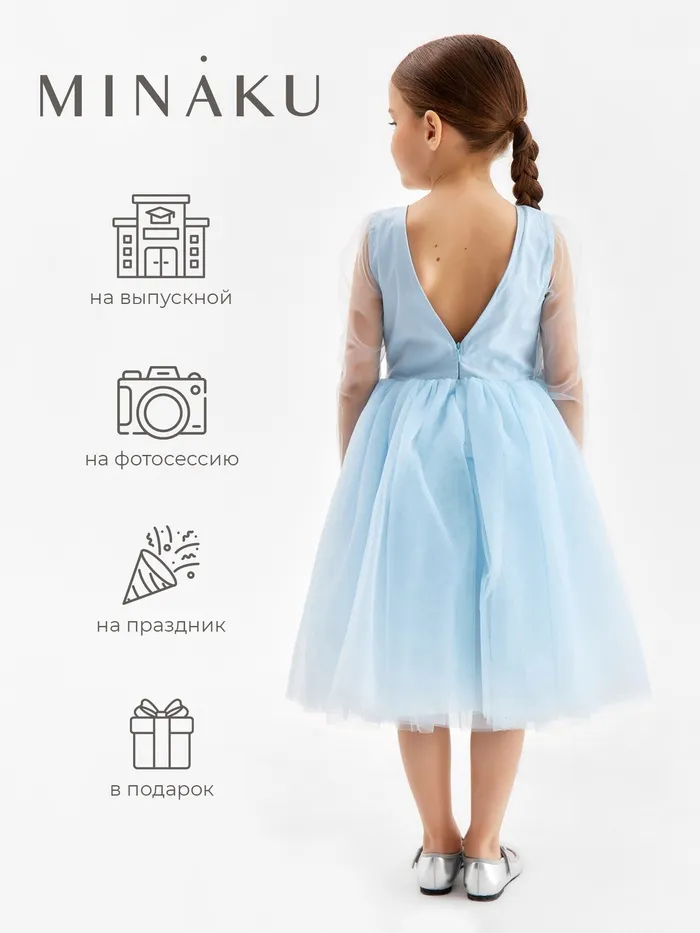 Платье нарядное детское MINAKU: PartyDress, голубое, рост 134 см — Характеристики
