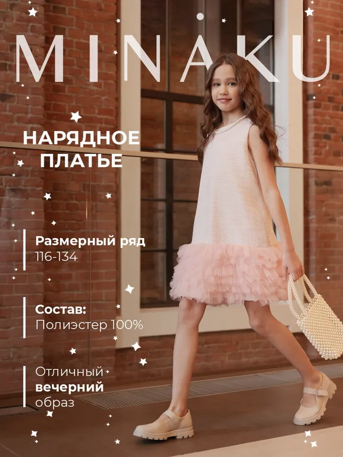 Платье нарядное детское MINAKU: PartyDress, розовое, рост 122 см — Характеристики
