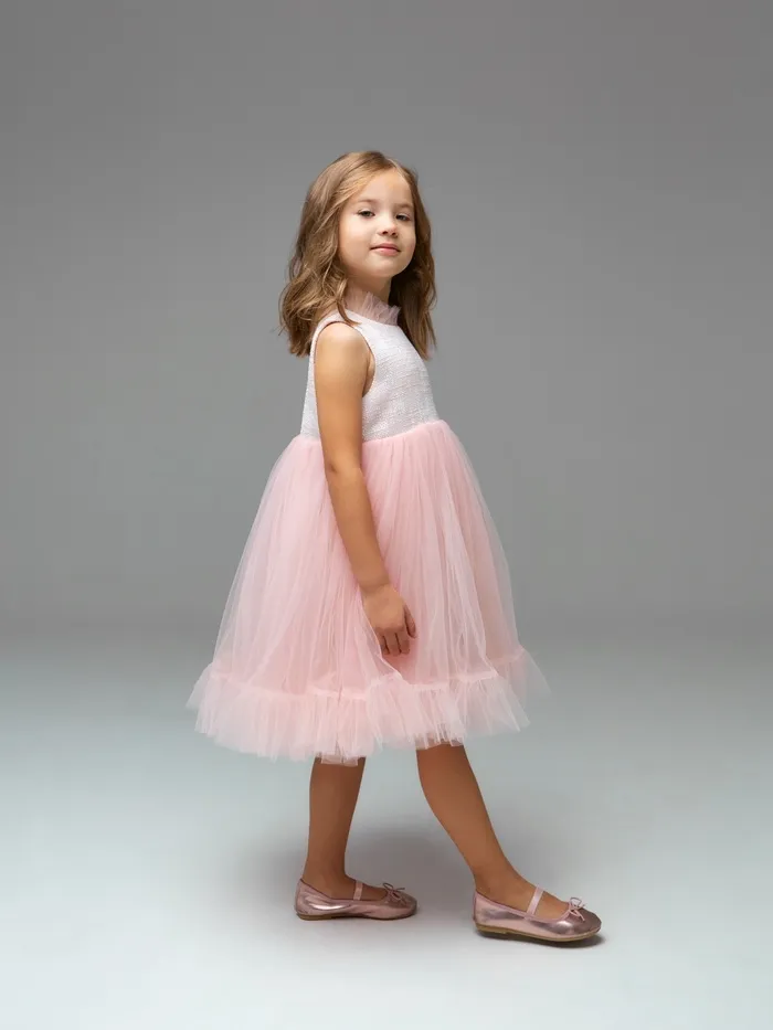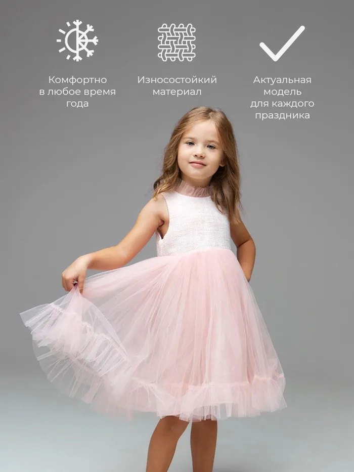 Платье нарядное детское MINAKU: PartyDress со стойкой цвет розовый, р-р 116 — Характеристики