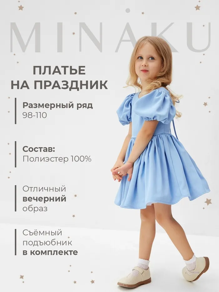 Платье нарядное детское MINAKU: PartyDress, цвет голубой, рост 116 см — Характеристики