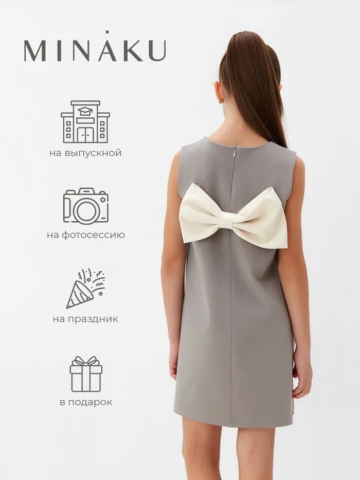 Платье нарядное детское MINAKU: PartyDress, цвет серый, рост 140 см — Характеристики