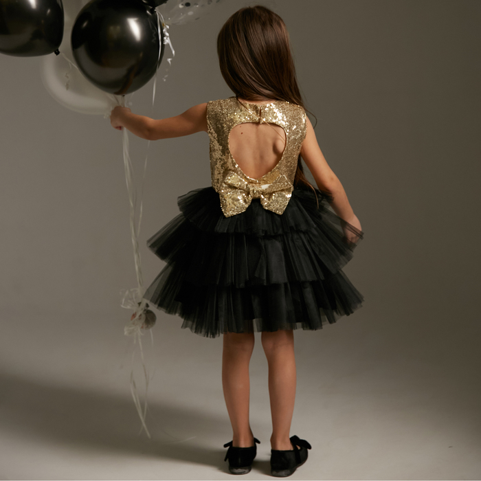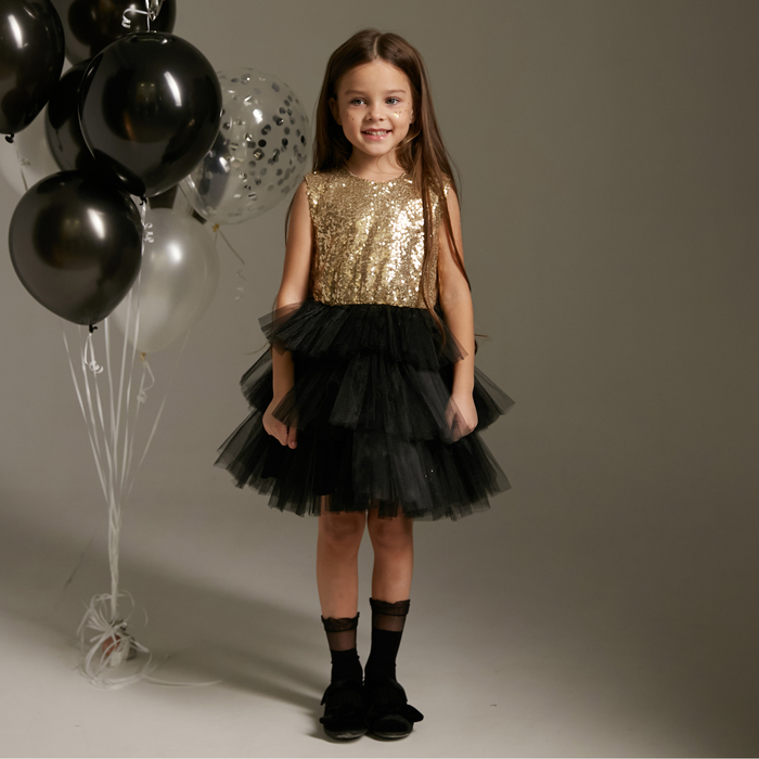 Платье нарядное детское с пайетками KAFTAN, размер 28 (86-92 см), чёрный