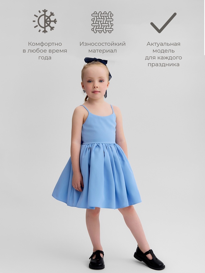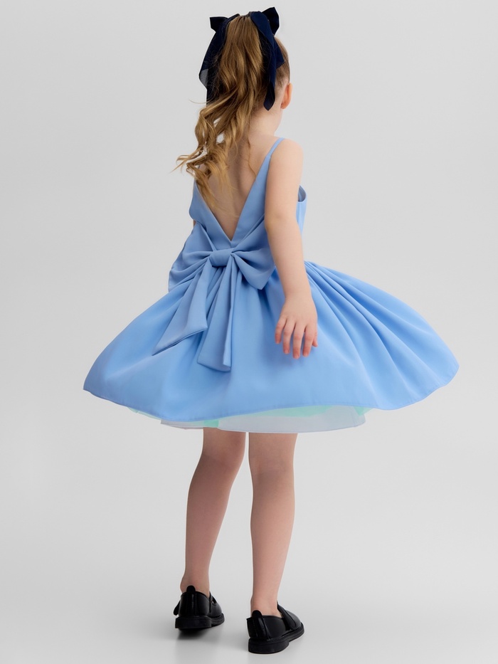 Платье нарядное для девочки MINAKU: Party Dress с бантом, голубое, рост 110-116 см — Характеристики