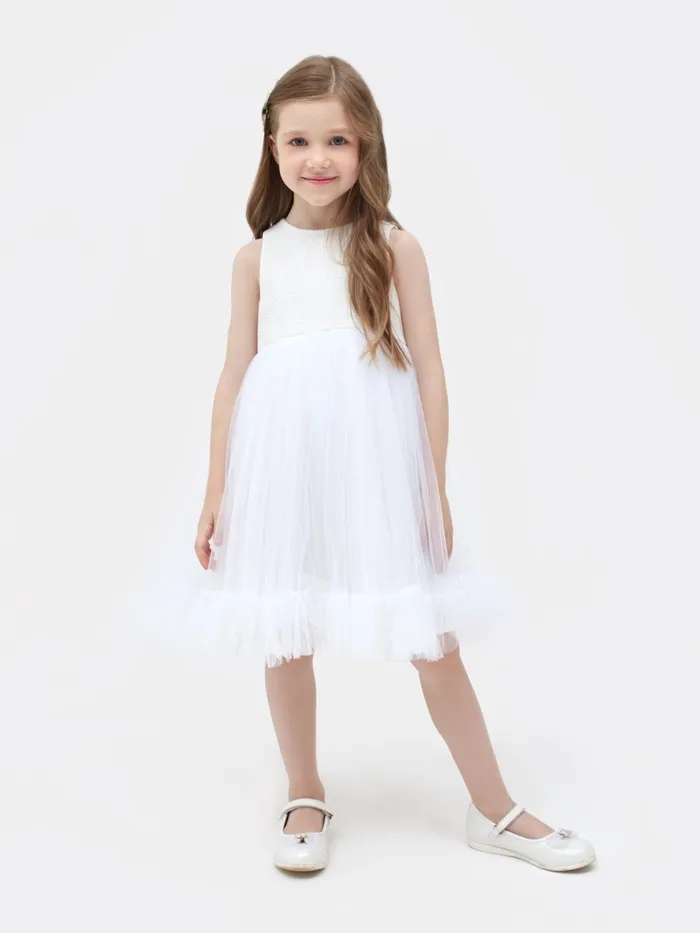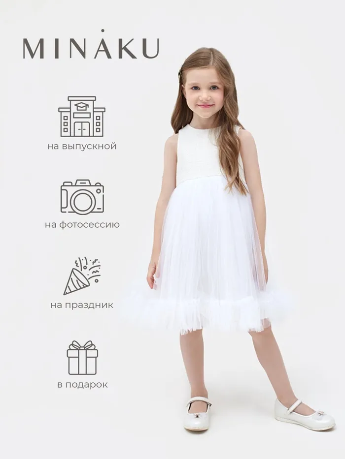 Платье нарядное для девочки MINAKU: PartyDress, белое, рост 128-134 см — Характеристики
