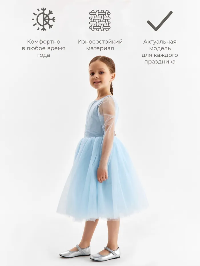 Платье нарядное для девочки MINAKU: PartyDress, голубое, рост 98-104 см — Характеристики