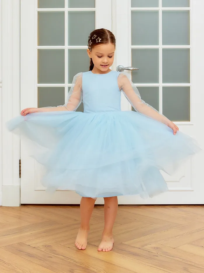 Платье нарядное для девочки MINAKU: PartyDress, голубое, рост 98-104 см