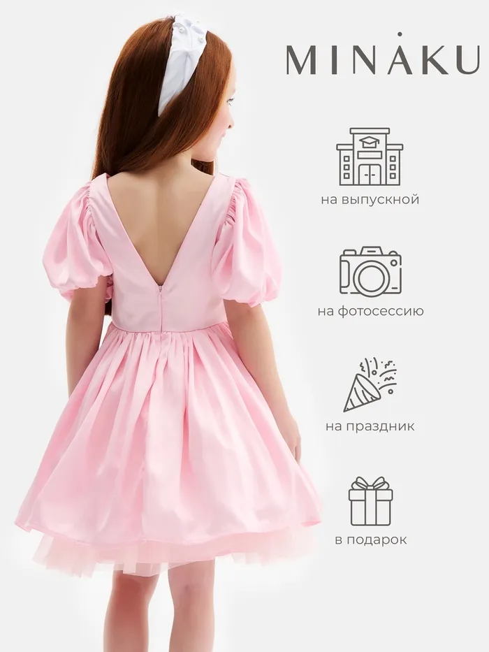 Платье нарядное для девочки MINAKU: PartyDress с рукавами, розовое, рост 116-122 см — Характеристики