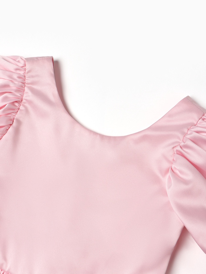 Нарядное платье для девочек с элегантным кроем и юбкой-пачкой. Выполнено из качественного сатина с подкладкой из хлопка. Длина – около 70 см, рост – 122 см. Розовый цвет с декором из блесток и страз. Лёгкая, воздухопроницаемая ткань обеспечивает комфорт. Регулируемый пояс для удобной посадки. Подходит для праздничных мероприятий, дней рождения и выпускных.