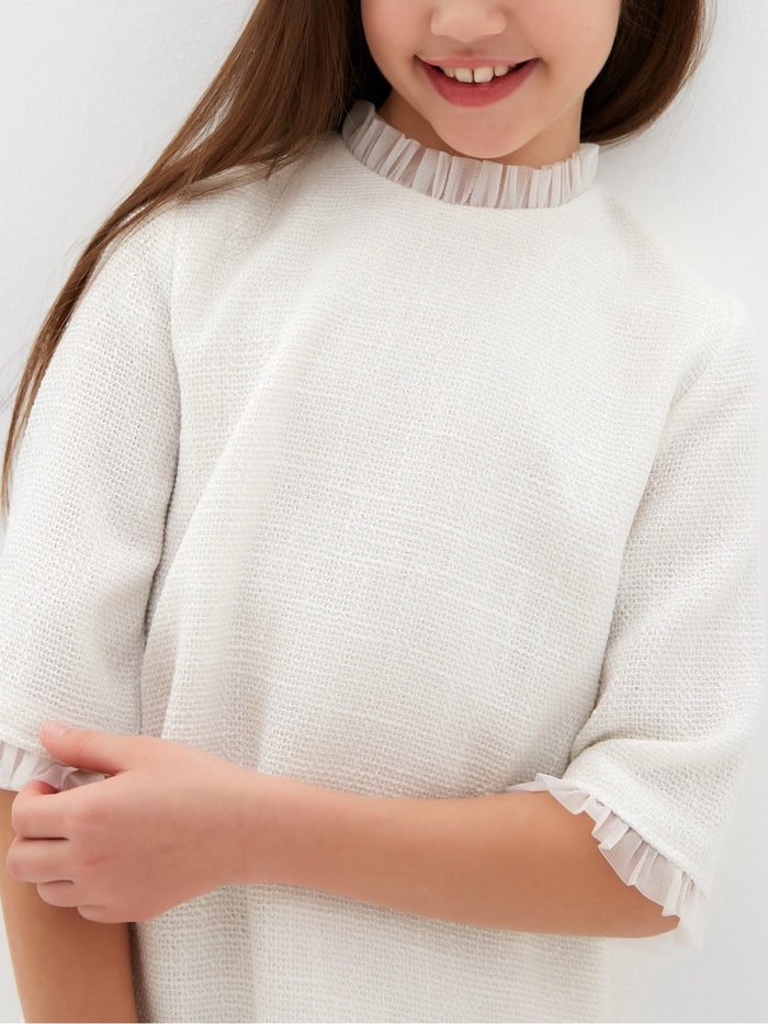 Платье нарядное для девочки MINAKU: PartyDress, с воротником, белое, рост 134-140 см — Характеристики