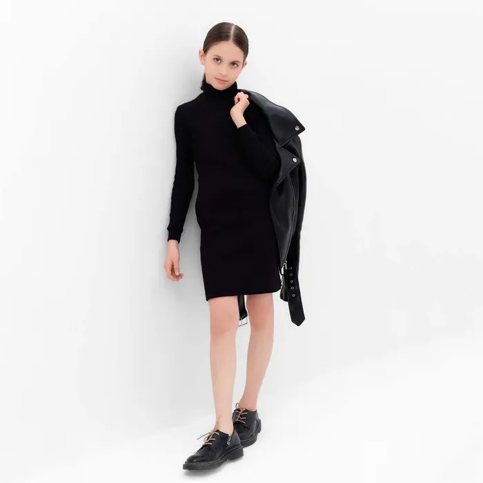 Платье облегающее для девочки MINAKU: Casual Collection, чёрное, рост 146-152 см — Характеристики