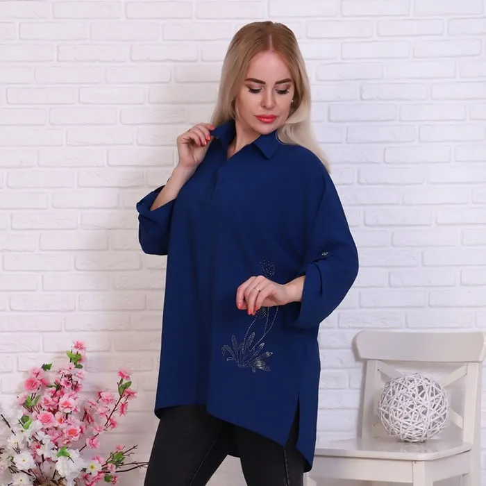 Платье рубашка, цвет синий, размер 60