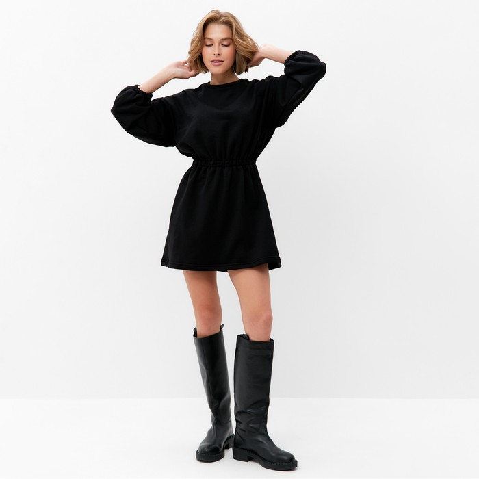 Платье с кулиской женское MINAKU: Casual Collection, чёрное, размер 48 — Характеристики