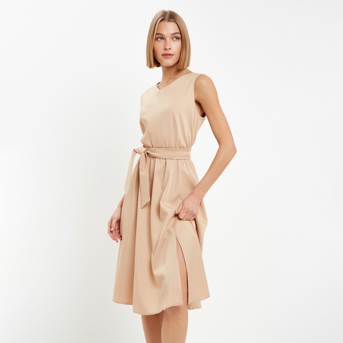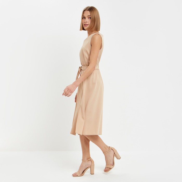 Платье с поясом миди женское MINAKU: Casual collection, бежевое, размер 46 — Характеристики