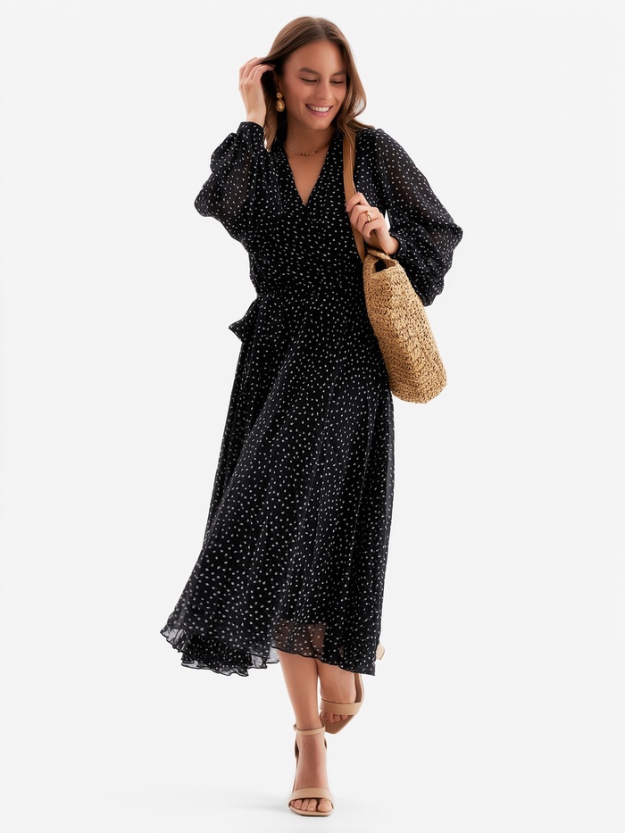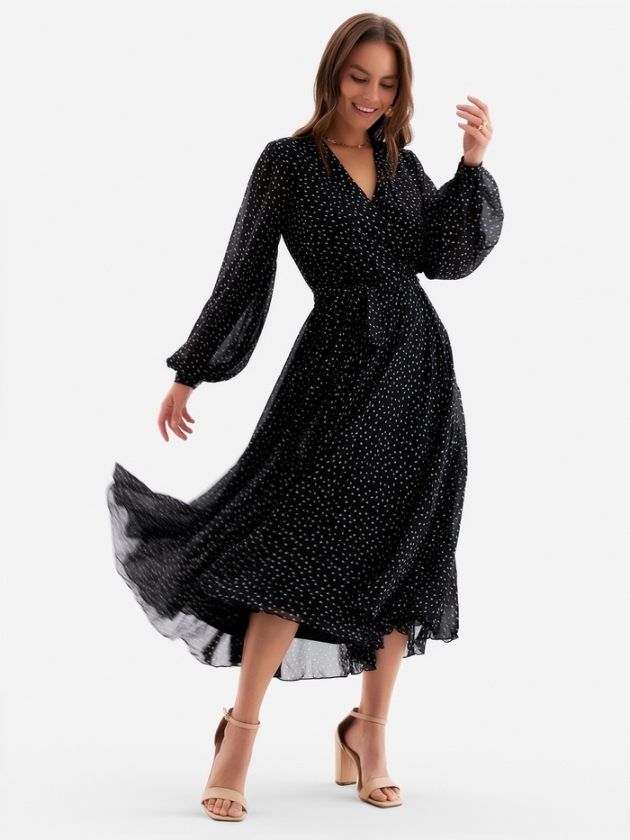 Платье с поясом миди женское MIST, размер 50, чёрное — Характеристики