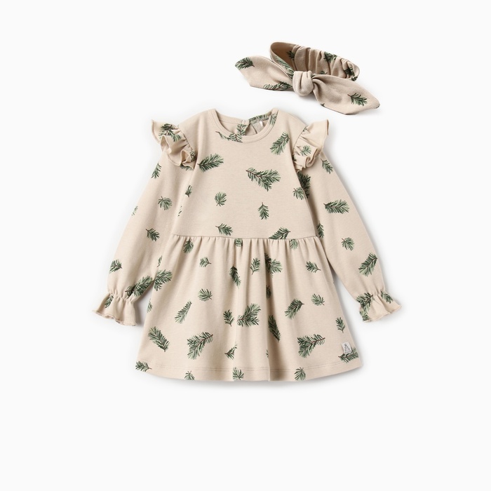 Платье с повязкой Крошка Я "Еловые веточки", рост 80-86 см