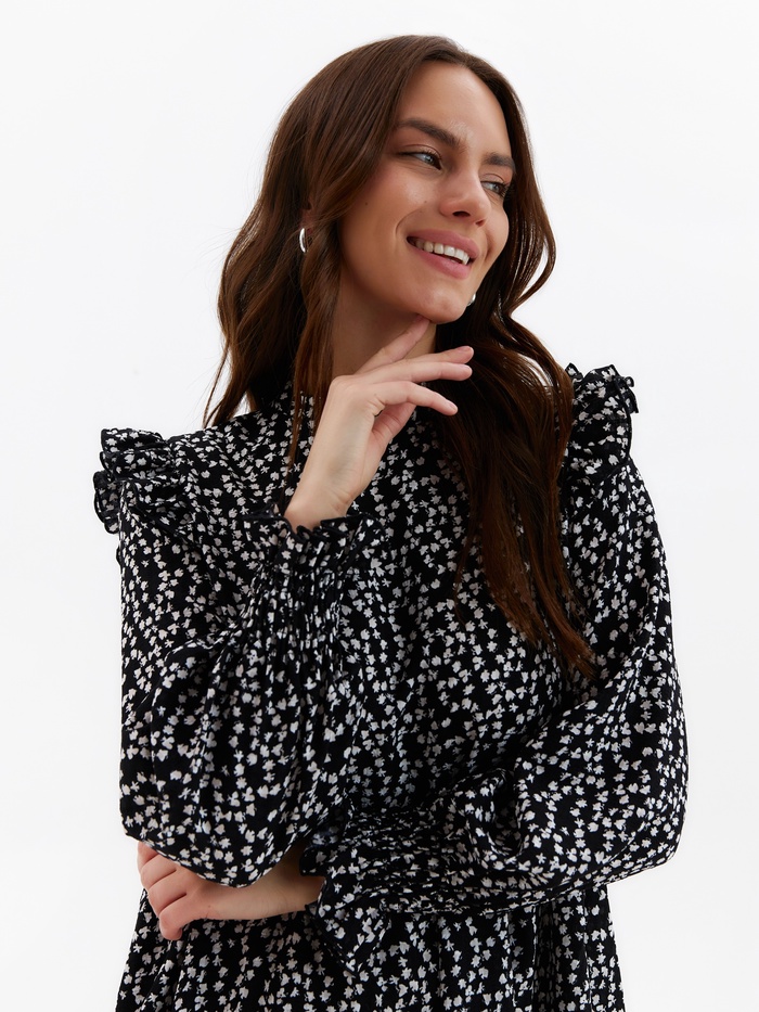 Платье с рюшами мини женское MIST, размер 44, чёрное — Характеристики