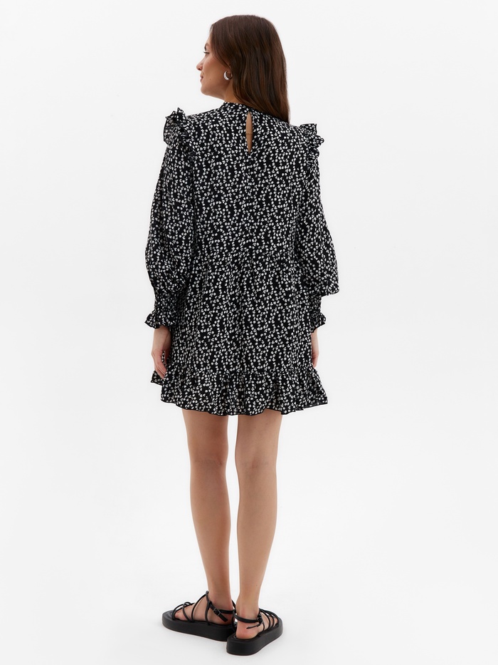 Платье с рюшами мини женское MIST, размер 48, чёрное — Характеристики