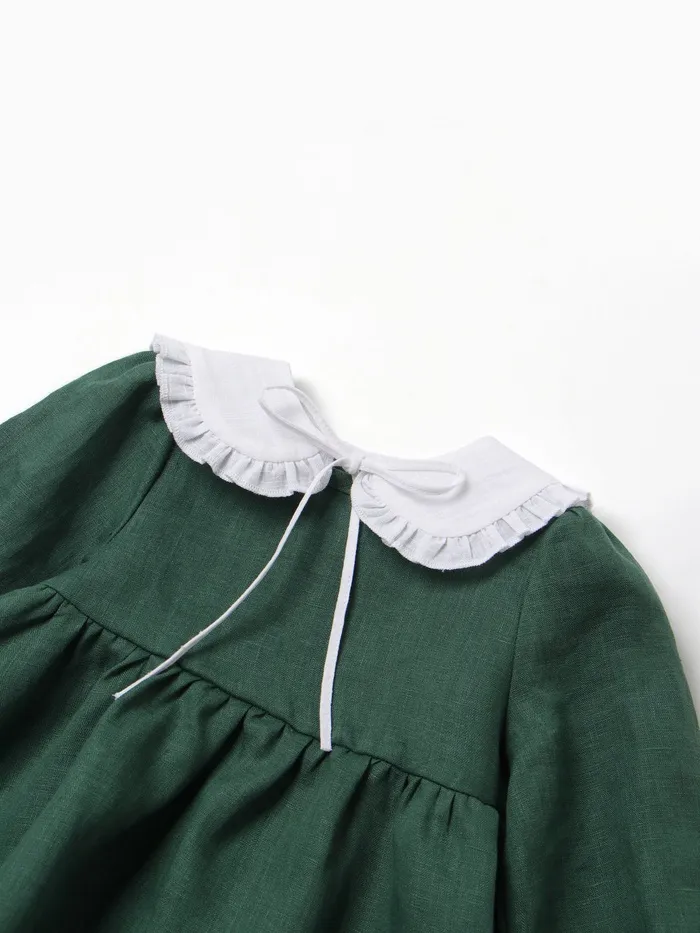 Платье с воротничком Крошка Я Linen, 74-80, зеленый — Характеристики