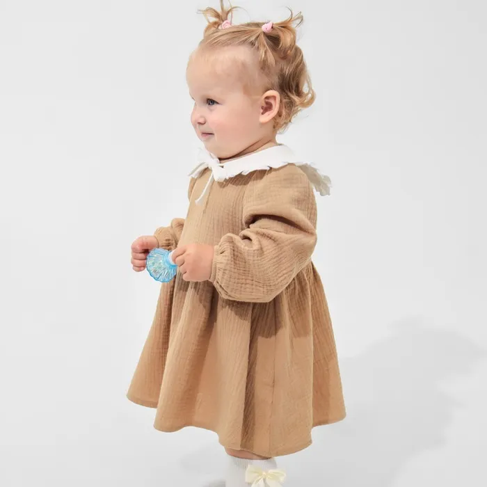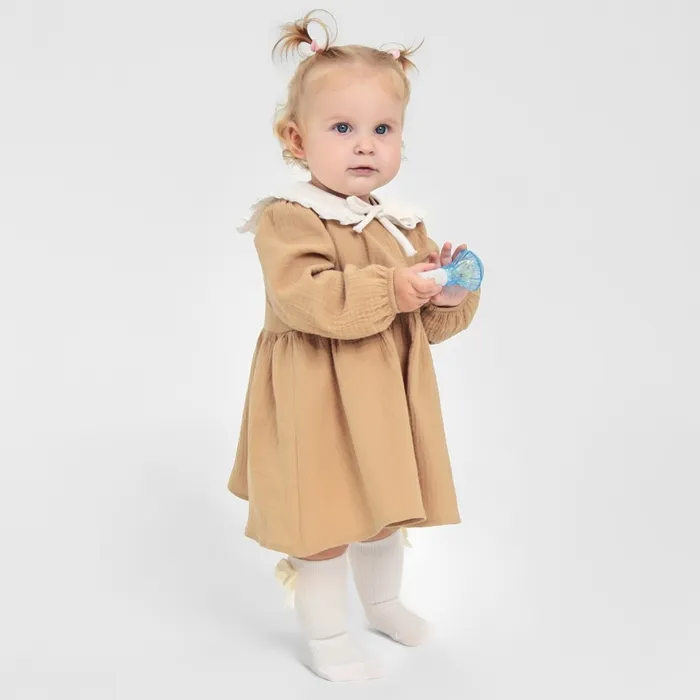 Платье с воротничком Крошка Я Муслин, 80-86, бежевый — Характеристики