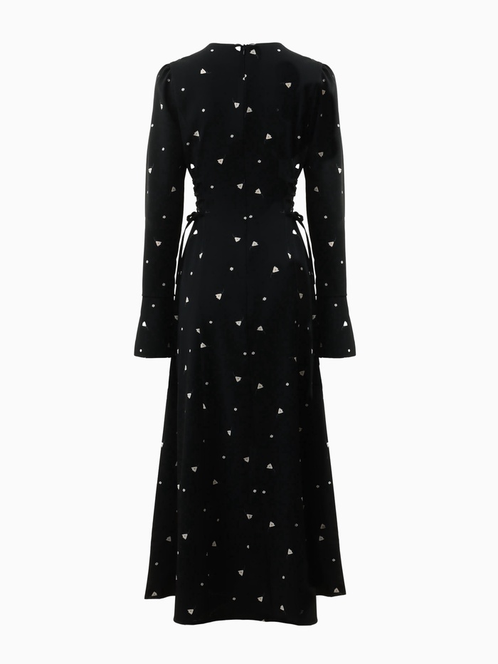- Элегантный силуэт, подчеркивающий достоинства: А-силуэт платья идеально садится по фигуре, визуально стройнит, а завязки на талии позволяют создать желаемый акцент и подчеркнуть женственность.