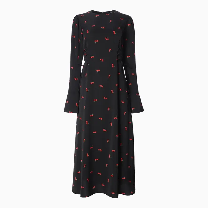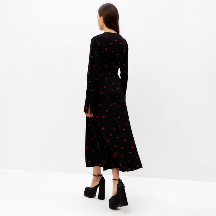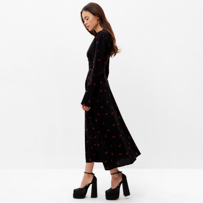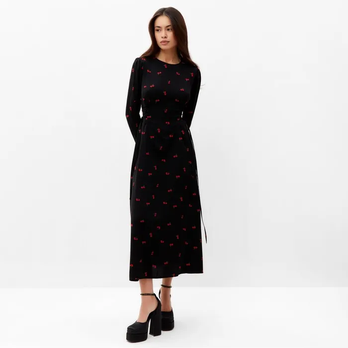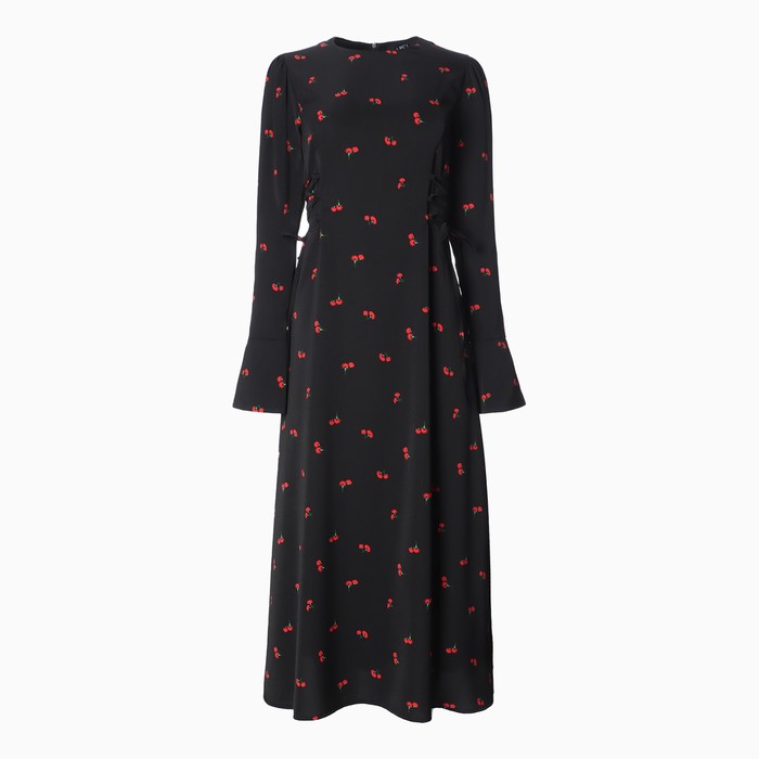 Платье с завязками на талии миди женское MIST Flower, размер 42, чёрное — Характеристики