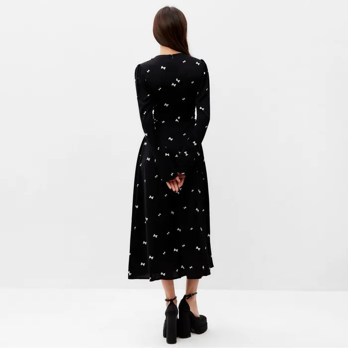Платье с завязками на талии миди женское MIST Flower, размер 46, чёрное — Характеристики