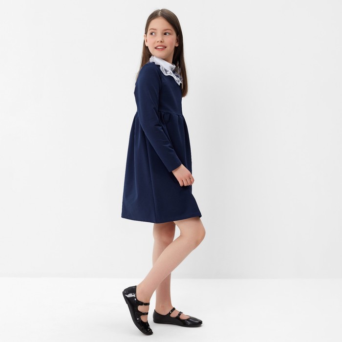 Платье школьное с воротником, рост 122-128, синее — Характеристики