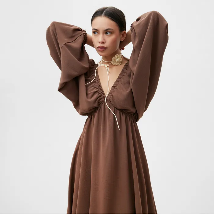 Платье женское MIST с глубоким вырезом р. 42, коричневый — Характеристики