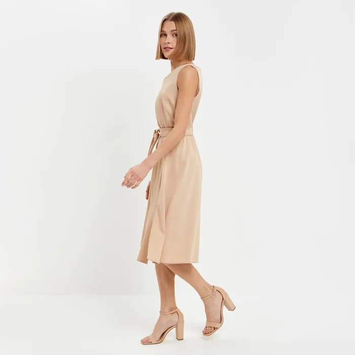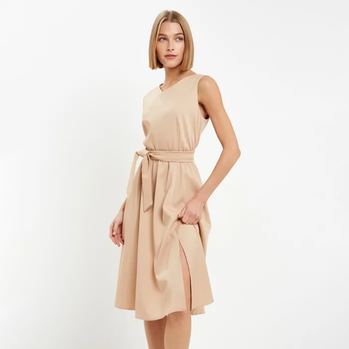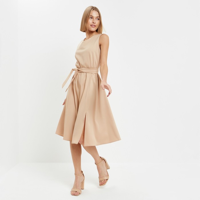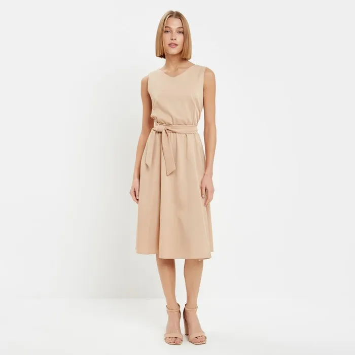Платье женское с поясом MINAKU: Casual collection цвет бежевый, р-р 44 — Характеристики