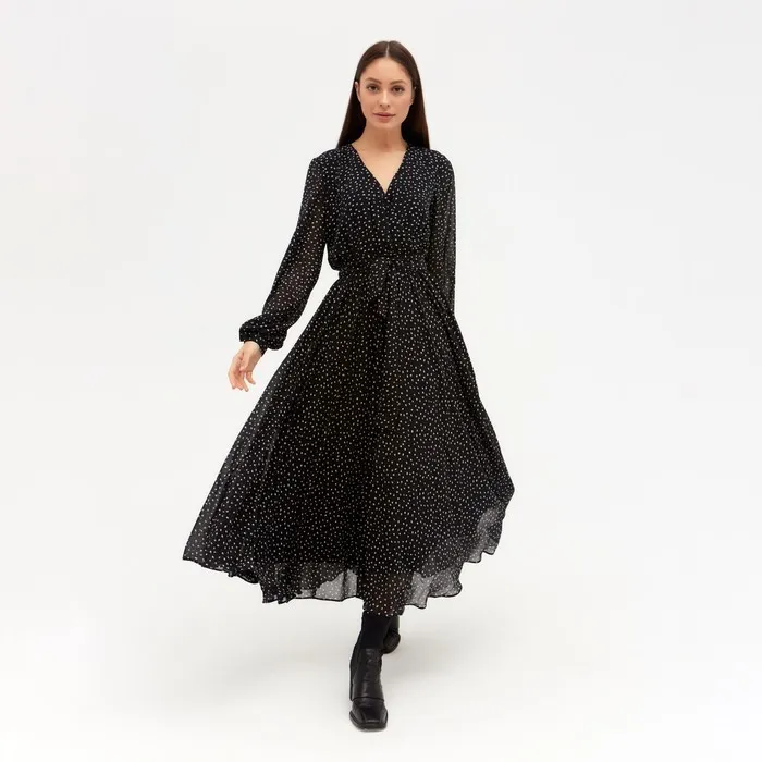 Платье женское с поясом MIST миди, размер 46, чёрный — Характеристики