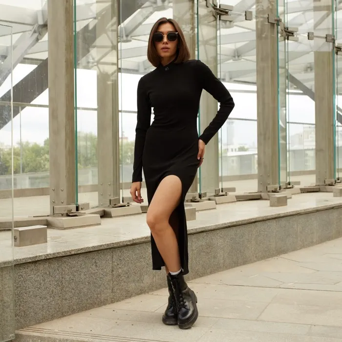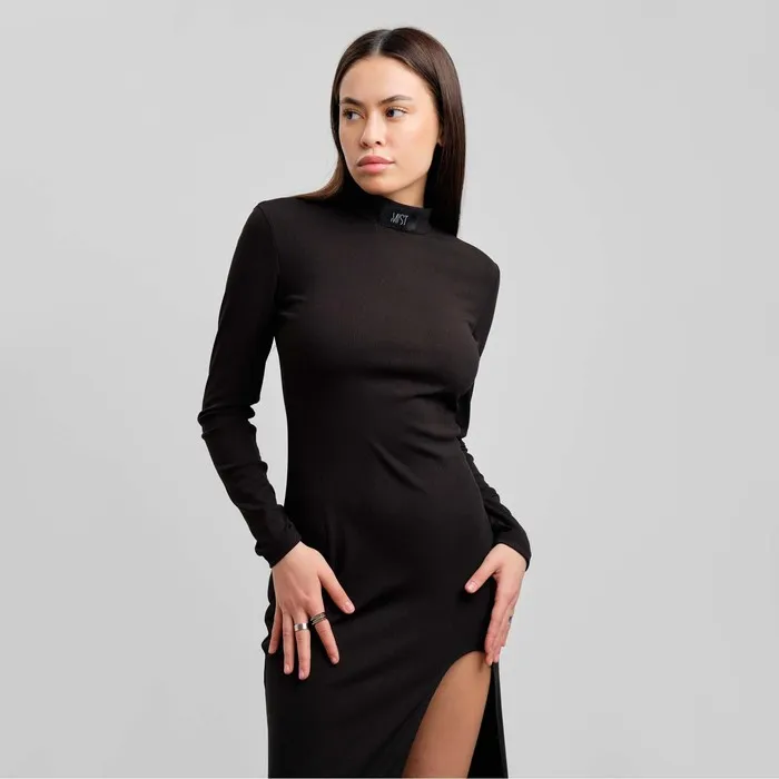 Платье женское с разрезом MIST р. 42, чёрный — Характеристики