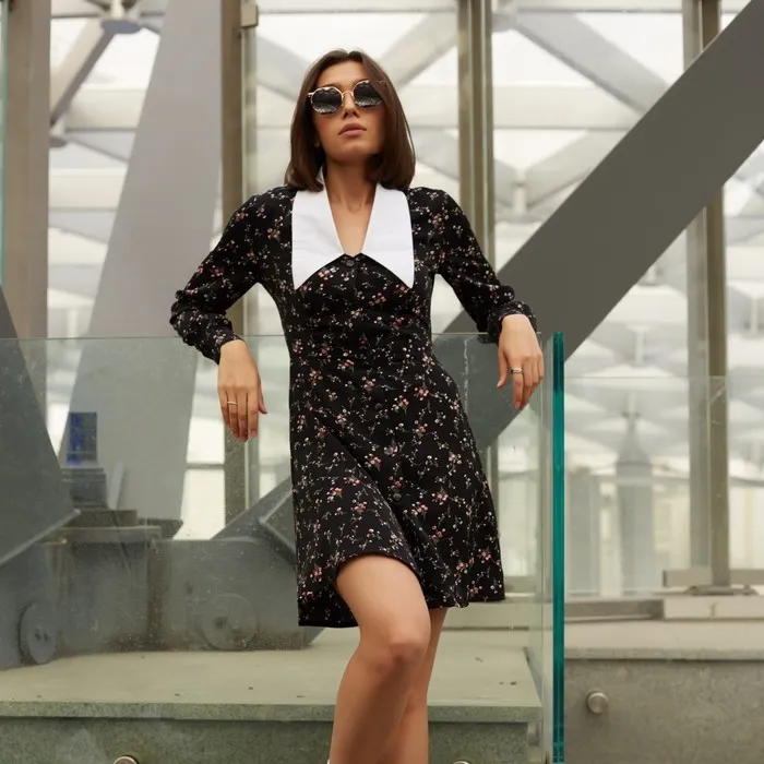 Платье женское с воротником MIST р. 48, чёрный — Характеристики